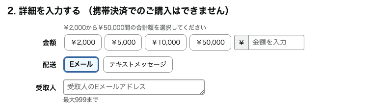 必要なポイントとメールアドレスを入力して決済画面に移動。